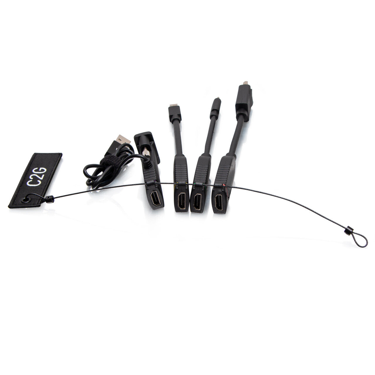 The Patented (US 11,444,419 B2) Universal 4K HDMI Dongle Adapter Rings with Antimicrobial Technology are the perfect addition to conference rooms, huddle spaces, lecture halls, or classrooms to ensure that anyone can connect. The standard configuration includes the adapters to connect nearly any device to the in-room display while supporting up to a 4K video resolution. C2G offers various connection combinations that can include HDMI to DisplayPort, Lightning, Mini DisplayPort, Micro HDMI, Mini HDMI, USB-C, VGA adapters to meet connectivity challenges. If you need additional connectivity, C2G has recently launched USB-A to USB-C Dongle Adapters that support USB 2.0 (480 Mbps) data only transmission.