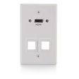 This wall plate is an ideal solution for installations which require that a Blu-ray player be connected to a projector through in-wall cabling. This wall plate features a flexible HDMI pigtail which makes installing this wall plate in a wall box easier than wall plates which require use of a standard HDMI cable. The keystone openings allows this wall plate to be easily integrated with existing Ethernet network, or telephony cable infrastructure. This wall plate is designed to work with standard wall boxes and the aluminum construction provides durability and a long life.
