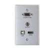 Single Gang Wall Plate - VGA + 3.5mm + HDMI, USB, 4k x 2k 60Hz, 4k x 2k 30Hz, 1080p, 720p, 480p, 5V, 209.6g, Aluminum