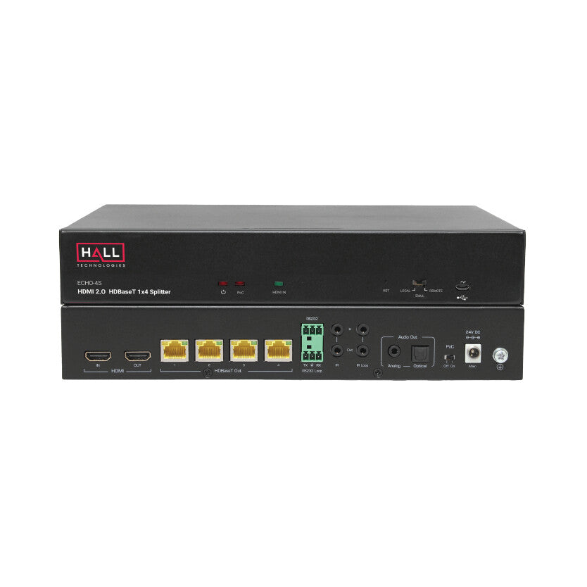 The ECHO family is a series of extension products designed to allow a single HDMI 2.0 source to display remotely at up to eight different locations, using HDBaseT technology. HDMI resolutions up to 4K UHD (4K@60 4:4:4) can be extended up to 70m, while resolutions up to 1080p can be extended 100m over a single CAT5e or CAT6 cable. The ECHO family supports HDCP 2.2 and 1.4 content protection, as well as HDR10 high dynamic range video.