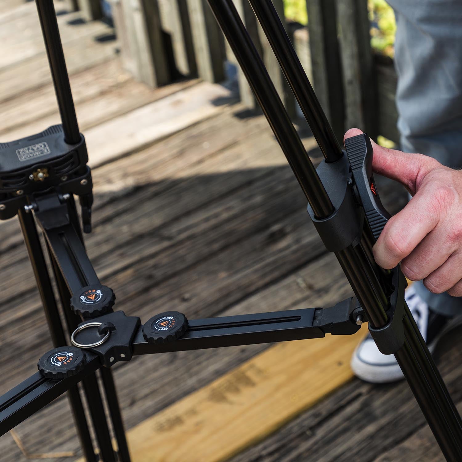 The GA752 tiered video tripod legs can hold a whopping 88 lbs. and utilize a convenient mono-lock system that allows you to lock and unlock both stages of each extendable leg with one motion. Each set of legs includes a removable GS-01 mid-level spreader and a set of F3 rubber feet. The feet are easily removable to reveal spikes that allow you to set up your shot on soft ground. Finally, the GA752 is topped off with a 75mm bowl for light-to-medium weight video tripod heads.