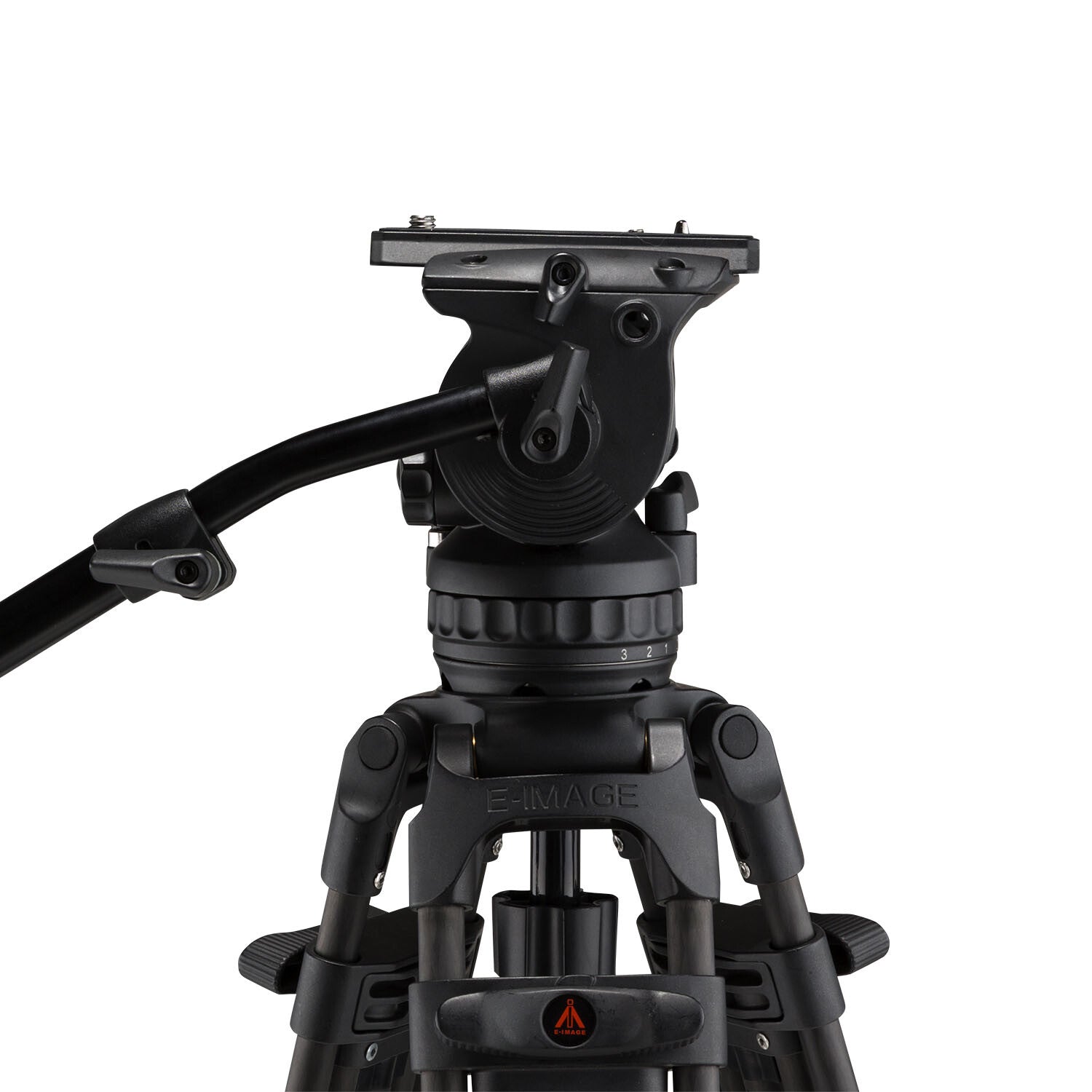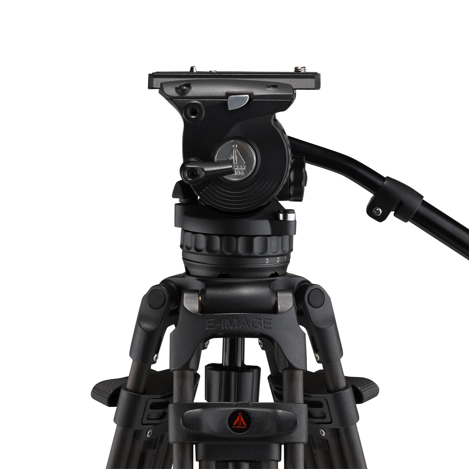 The GH06 Fluid Video Tripod Head has a recommended payload of 13.2 lbs., includes a GB2 panhandle and GP1 quick release plate, and fits into a 75mm bowl. Pan and Tilt drag each have 4 stages of adjustment (0-3) and the counterbalance has six stages that can be dialed in. The GH06 has one rosette for mounting panhandles and can support any of the three handles available from E-Image. Last, but not least, the GH06 has two accessory mounting points toward the front of the head: a 1⁄4″-20 on one side and a 3/8″-16 on the other.