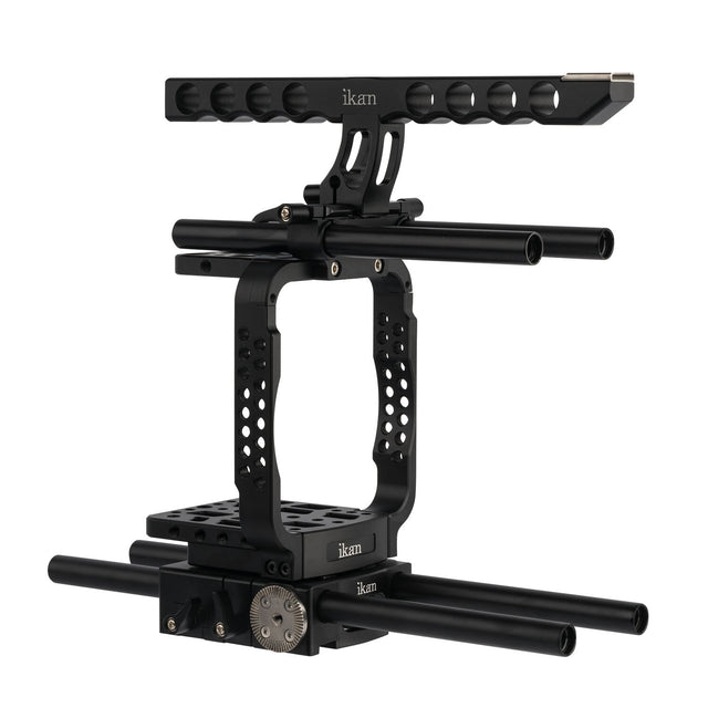 - Includes Cage Body, 15mm Base Plate, 9″ Dovetail Plate, Top Handle, Monitor Mount, and Two Pairs of 15mm Rods