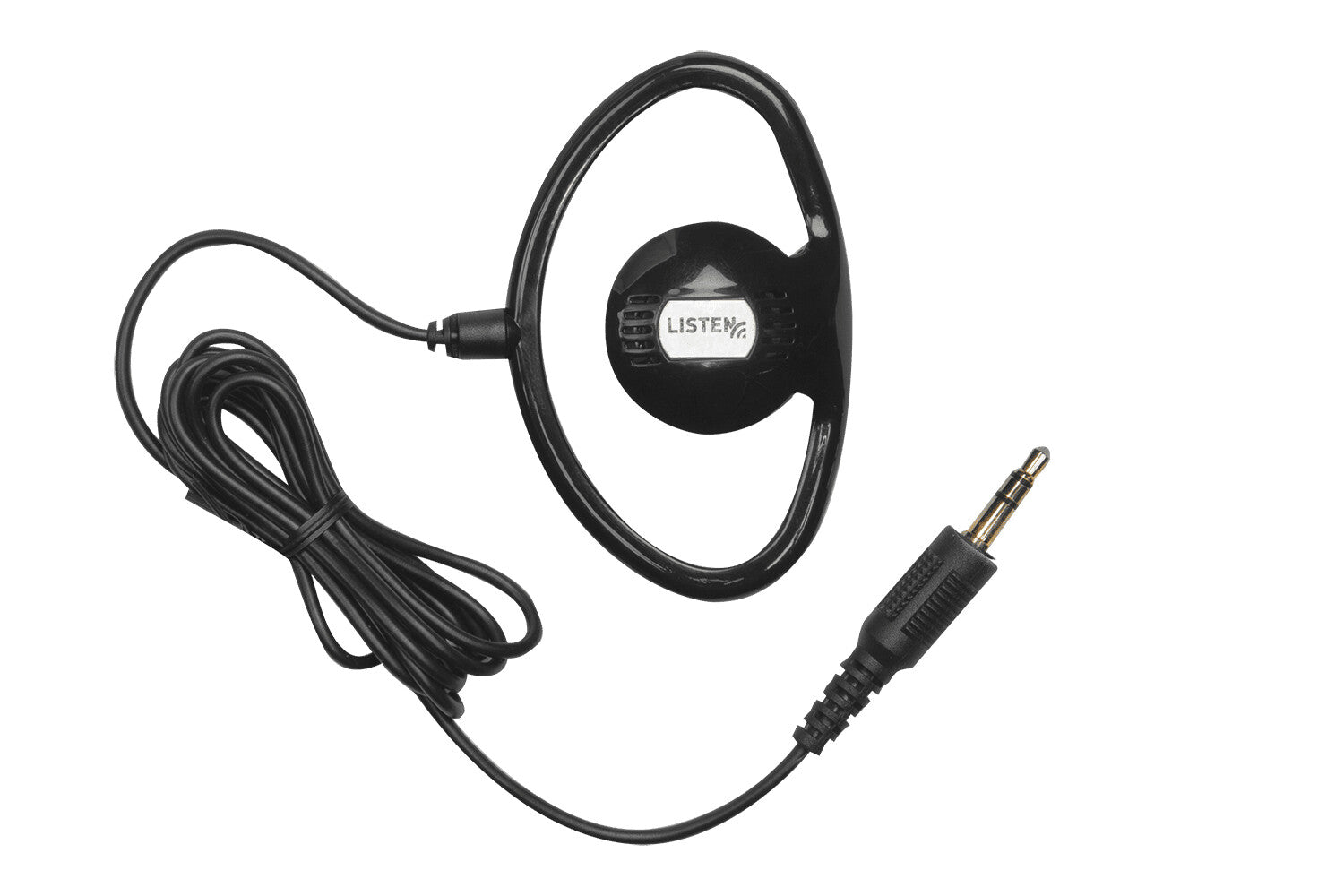 One of Listen’s most popular earpieces, the ear speaker fits easily over the ear. Hard plastic is easy to clean and provides venues with a clean, reusable earpiece. This piece can also be used with hearing aids.