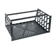 Captivate components with CAP Series clamping rackshelves. Rubber-lined clamps secure a component from the top. Adjustable rear “L” brackets prevent units from being pushed back. Vented bottoms with a robust 16-gauge steel design that maintains structural integrity in mobile applications. Finished in a durable black powder coat. Useable shelf area is 17.38”w x 15.10”d.