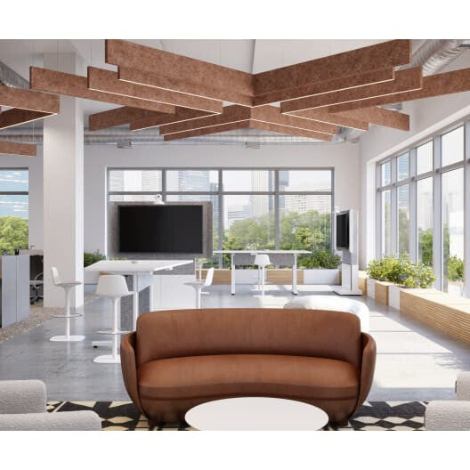 - The acoustic material is made of 100% polyester containing up to 50% of recycled plastic bottles (PET).