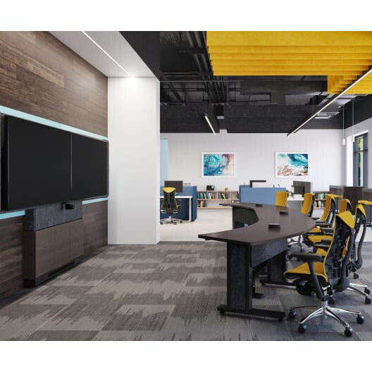 - I’m not hearing an echo. The Floor-to-Wall Display Stand and display shroud are wrapped in Silver Gray acoustic fabric to limit audio reverberation for the highest quality audio experience for local and remote participants.