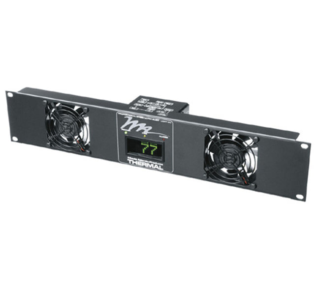 The two rackspace Ultra Quiet Fan Panel System provides smart cooling and monitoring to ensure a reliable installation in areas where fan noise is not an option, including boardrooms, classrooms, offices, houses of worship, etc. Thermostatic, proportional speed DC fan control ensures ultra quiet operation by varying fan speed based on enclosure temperature. Overtemp notification, local and remote, offers additional operation monitoring. A unique feature of the system provides notification in the event of fan failure via a local display or remote signal to an external alarm device.