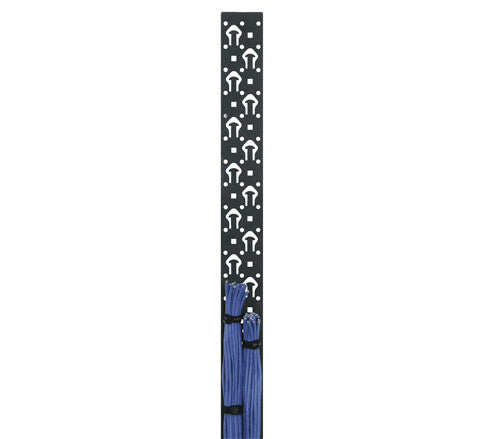 Perforated steel lacer strip mounts vertically to rackrail brackets and provides many locations to secure vertical cabling.