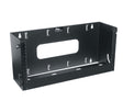 Pivoting Panel Mount enclosures provide fast, easy rear access to patch panels and network equipment. Innovative design has a 90° positive stop to facilitate punching down while fully open. Rugged steel construction; rack screws and hook-and-loop fasteners are included.
