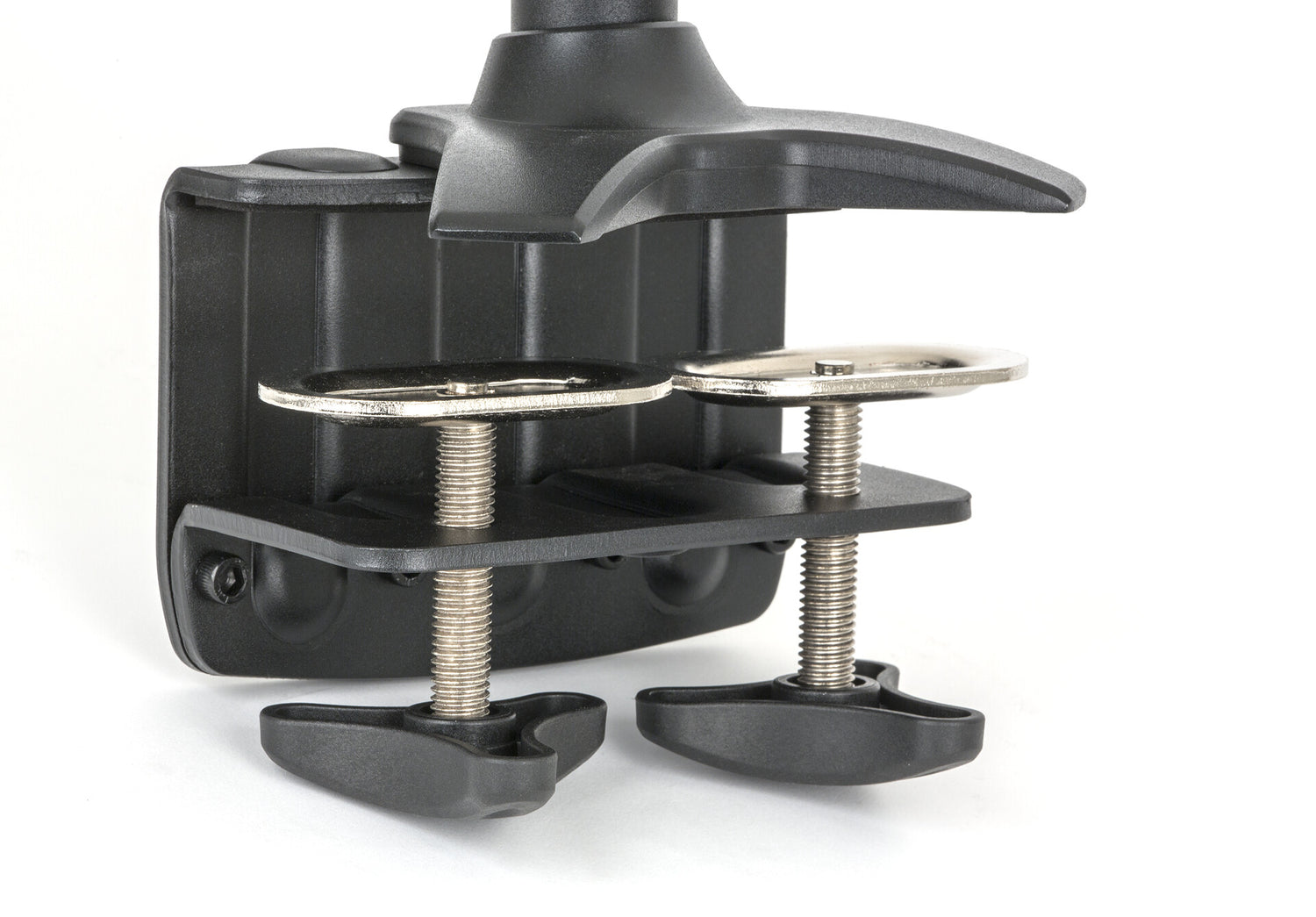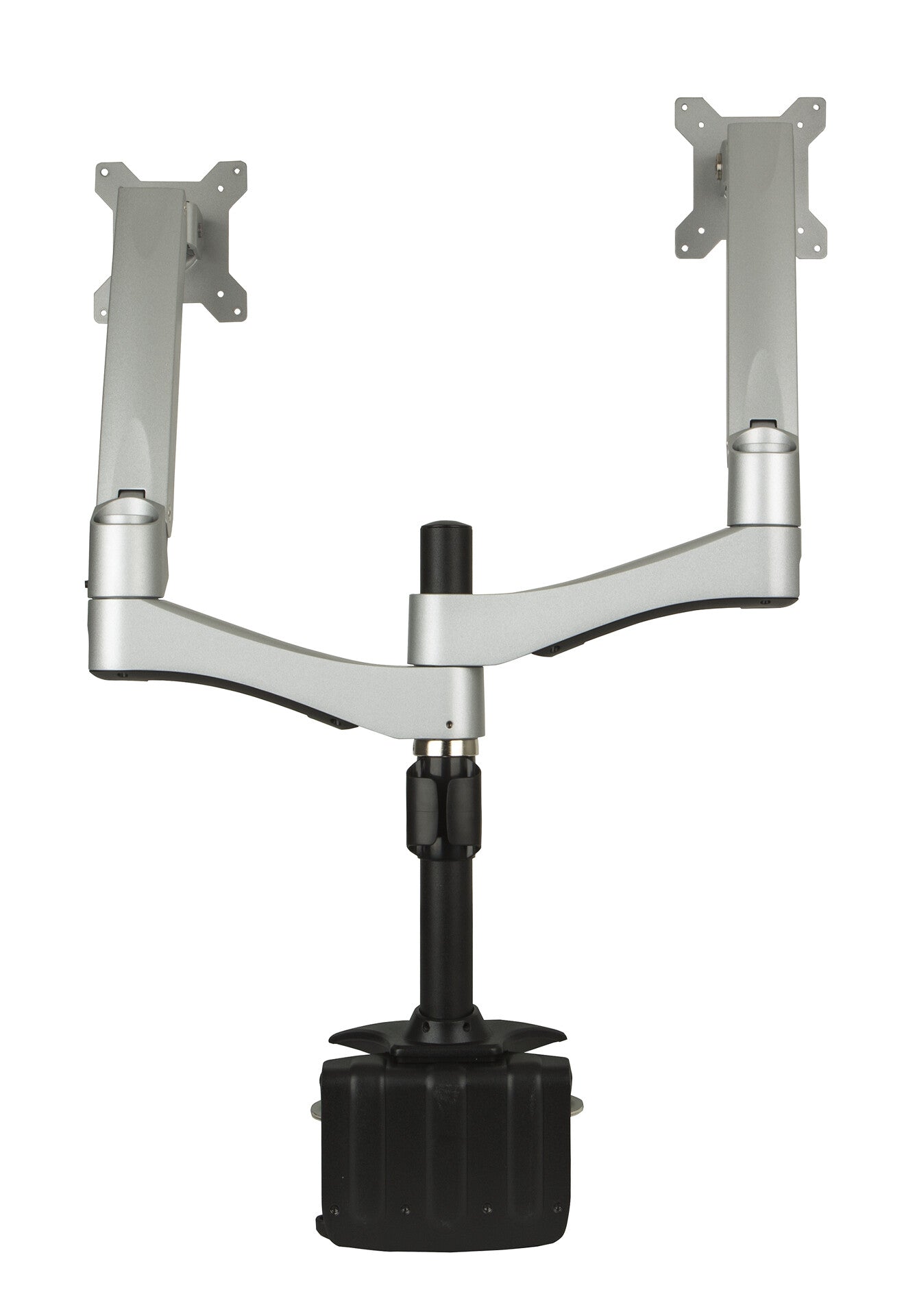 Planar’s Dual Monitor Arm provides the most versatility in display positioning. It allows you to easily pull in, push out, lift up/down, swivel, tilt, and rotate to provide maximum ergonomic comfort & productivity, freeing up desktop real estate, providing a clean and clutter free working environment. Monitors can be horizontally or vertically positioned. With this range of independent tilt, this dual arm clamp stand is perfect for using touch screen monitors on the desktop and having the flexibility to move them to comfortable work positions and then back up for information display.