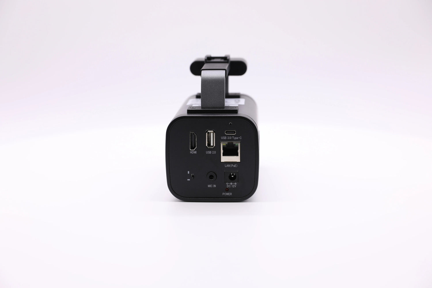 The Studio Pro includes an IR remote and a USB-powered premium lighting solution that offers 3000-6000k temperatures—soft white all the way up to crisp daylight. It also features a noise canceling microphone array, as well as a cold shoe. For flexible deployment, the Studio Pro is PoE capable and can also be powered by USB or standard 12VDC power supply.