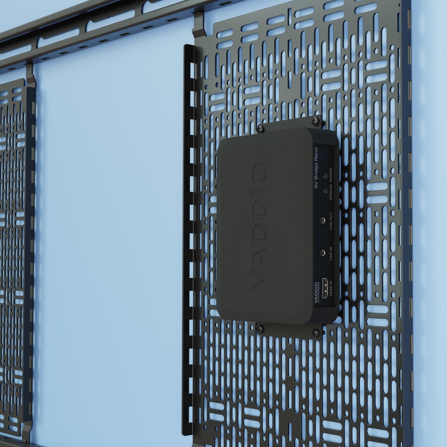 Low-profile mounting brackets for small devices, including AV Bridge Nano and other Vaddio desktop devices. The Mounting Brackets for Vaddio Desktop Enclosure are designed to accommodate the AV Bridge Nano and other desktop devices, making it easier for installers to provide a clean and professional installation. With the Mounting Brackets, installers can save time and effort by eliminating the need for custom mounting solutions. The brackets are versatile and easy to install, allowing for various mounting options to suit any installation scenario.