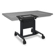 The e-Box mobile cart with motorized height adjustment and 90-degree tild securely accommodates ViewSonic interactive flat panel displays up to 220 lbs. A durable double-column design provides reliable, safe, and secure mounting, while a wired remote control delivers easy height adjustment and tilt up to 90-degrees for the display. (BalanceBox p/n: 487A03)