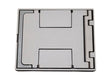 Flangeless cover for use in tile installation. Die-cast aluminum assembly. Lid area is flush with the finished floor, no cutouts provided.