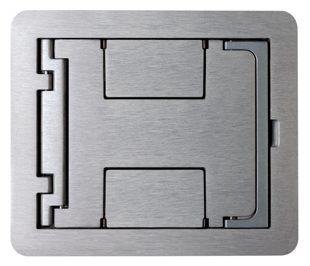 Flanged cover for use in tile or carpet installation. Die-cast aluminum assembly. Lid area is flush with the finished floor, no cutouts provided. TR indicates tamper-resistant version secured with tamper-resistant screw. North American made.