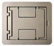 Flanged cover for use in tile or carpet installation. Die-cast aluminum assembly. Lid area is flush with the finished floor, no cutouts provided. TR indicates tamper-resistant version secured with tamper-resistant screw. North American made.