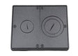 Flangless cover for use in tile or carpet installation. Die-cast aluminum assembly. Provided with one 1'' trade size screw plug for power or communication type cabling and one combination 1 1/4'' and 2'' trade size screw plug for communication type cabling. Allows for feeding both power and communication cabling. NOTE: Add suffix TR to the end of the part number to indicate tamper-resistant cover assembly. Tamper-resistant versions are secured with a single tamper-resistant screw.