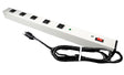 Sentrex high performance surge protection. Five outlets, lighted switch, durable putty white aluminum housing, 15A. Receptacles rotated 90 degrees and spaced to accommodate transformers. Length 24"" (610mm). 6' (1.8m) 14/3 SJT putty white cord with NEMA5-15 plug. Snap-on, slide-off mounting.