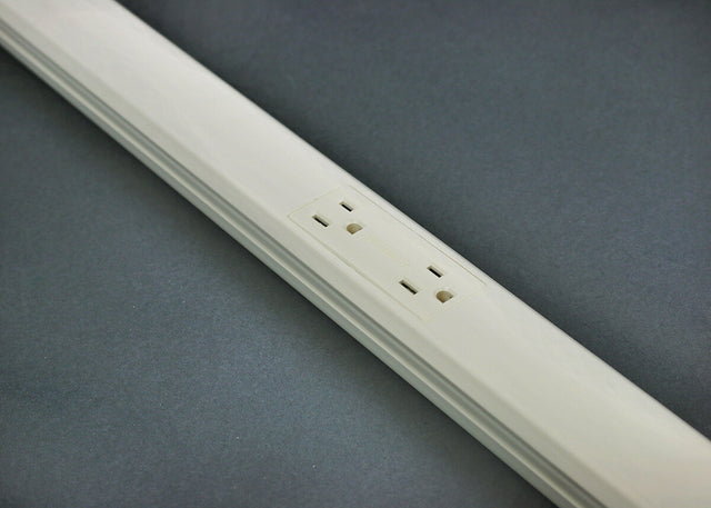 Nonmetallic Plugmold with Snapicoil harness. 48' in length with receptacles spaced 12'' on center. Nonmetallic Plugmold has a textured ivory finish. For use with 15 amp circuit.