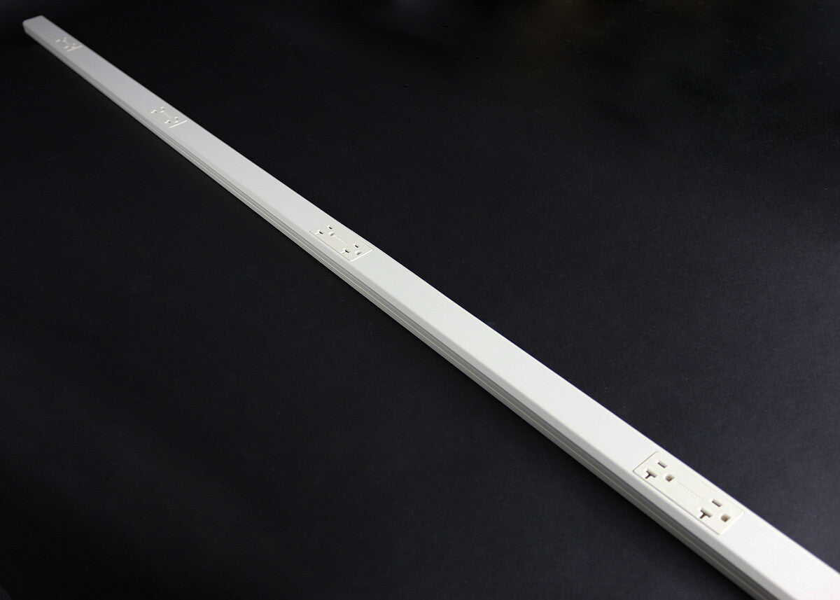 Nonmetallic Plugmold 6' in length with receptacles spaced 18'' on center. Nonmetallic Plugmold has a textured ivory finish. For use with 20 amp circuit.