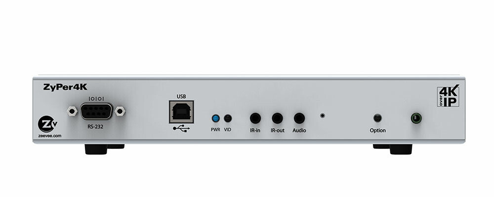 ZyPer4K Extended Module, HDMI 2.0 and Display Port input Encoder, with IP streaming via 10Gbit/copper. Supports USB, analog audio, IR, RS-232. Includes power supply. Requires ZyPer4K Decoder. Cables not included.