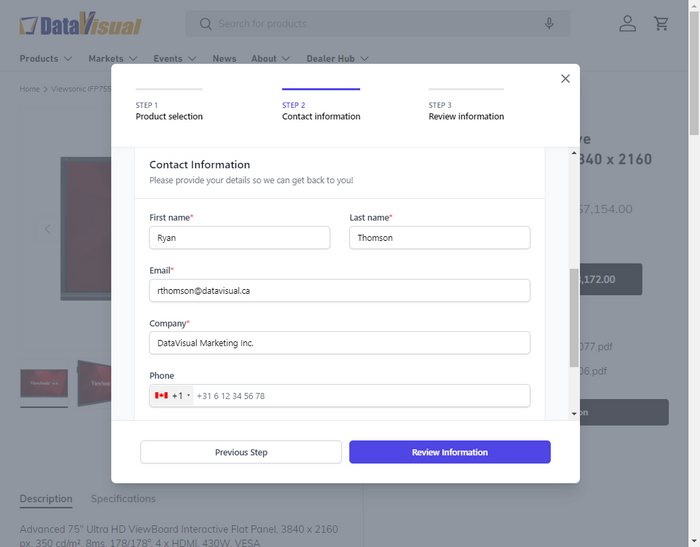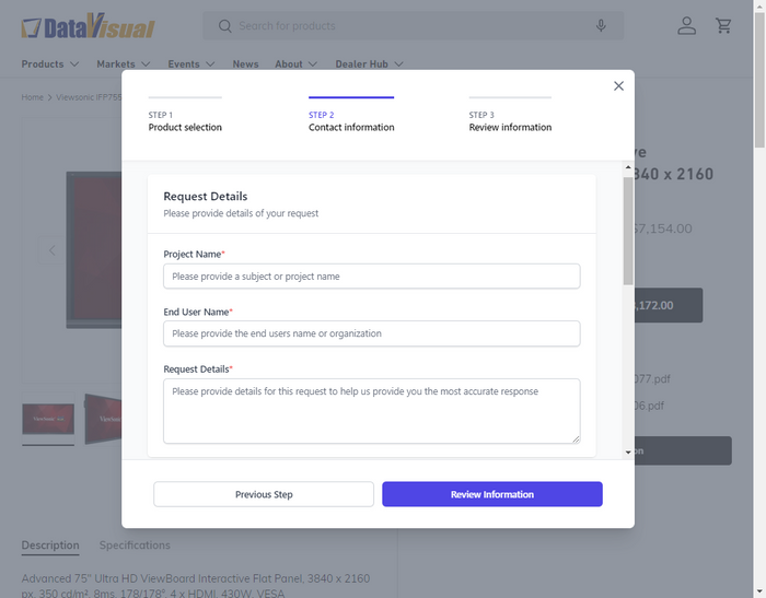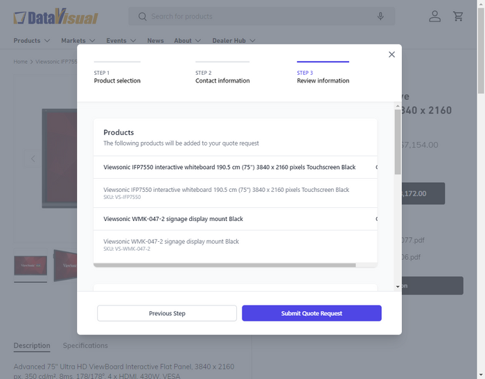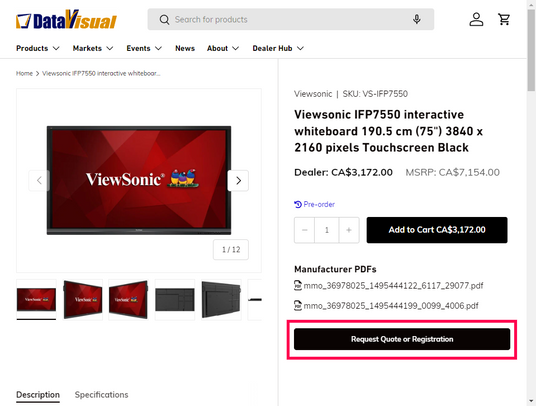 First start by navigating to any product page, then click the "Request Quote or Registration" button below the "Add to Cart" or PDF files.