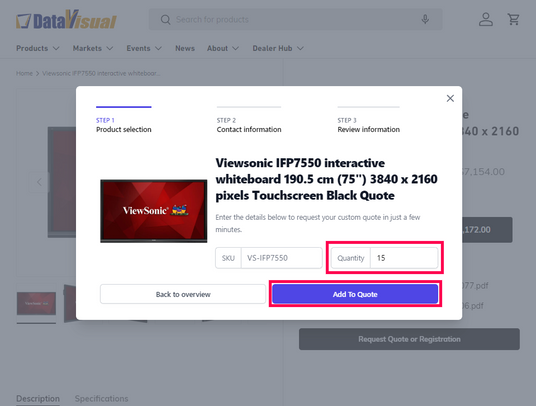 Next, provide the quantity you are requesting a quote or registration for, then click "Add to Quote"