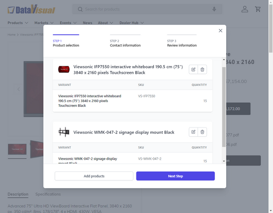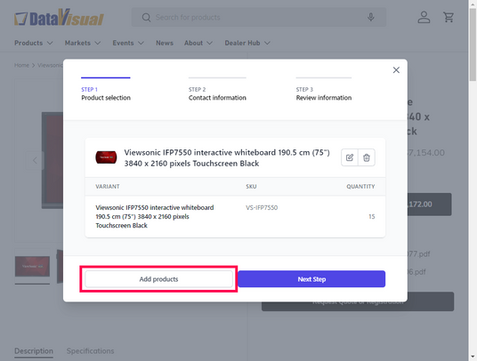Clicking "Add More Products" will open a searchable product grid. Simply search for your next product, press add to quote, provide the quantity and repeat for the rest of your request!