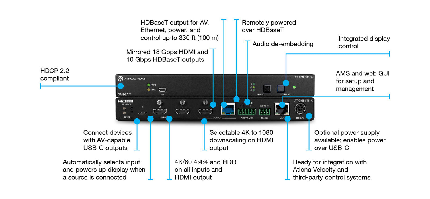 - Mirrored HDBaseT and HDMI outputs