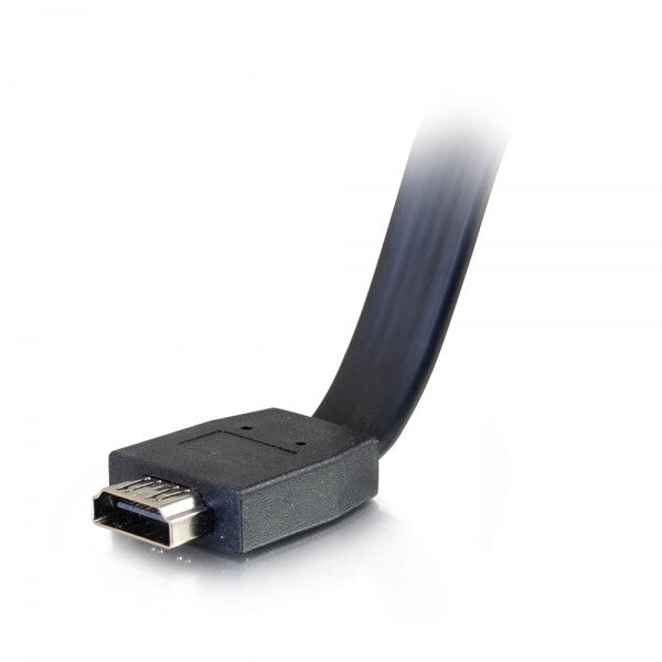 The HDMI pass through port includes a thin, flexible HDMI pigtail that accommodates the tight bend radius required for installations within a standard junction box.