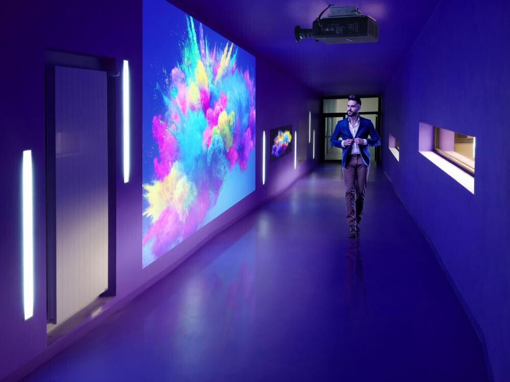 Install your Panasonic 1-Chip DLP™ laser projector on-ceiling and close to the wall for full top-to-bottom screen coverage with zero offset and minimal shadowing, even in low-ceiling applications. Zoom and wide-range V/H Lens Shift joins flexible edge-blending adjustment for multi-screen projection.